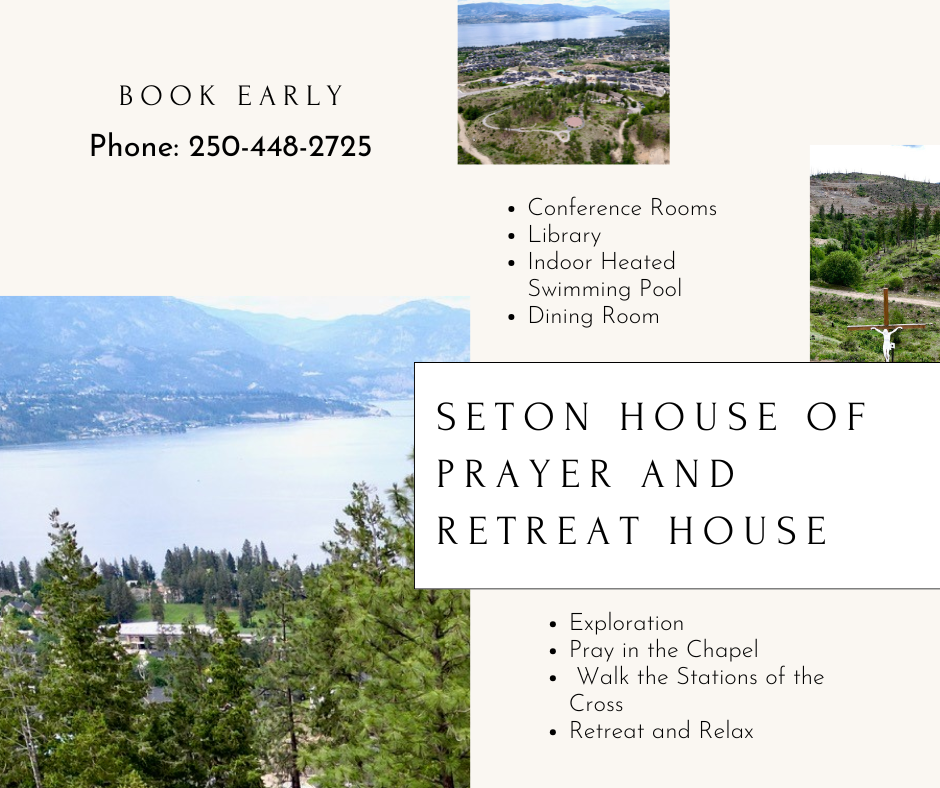 Seton House of Prayer and Retreat House is nestled in the hills above the Mission area of Kelowna, British Columbia, offering breathtaking views of Okanagan Lake. Come experience spiritual renewal and discover a deeper awareness of God in the stillness and beauty of this natural setting. We warmly welcome individuals and groups to visit us for a few hours, a day, a weekend or even longer. Whether you are seeking quiet reflection, group retreat time, or a pilgrimage opportunity, Seton House offers a peaceful environment rooted in prayer, healing and community.